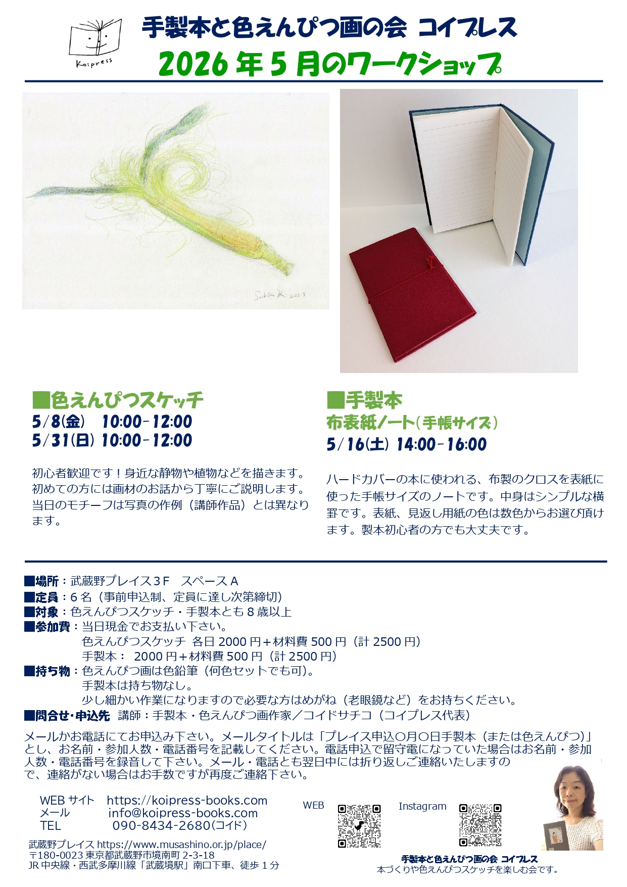 ■問合せ・申込先 講師:手製本・色えんぴつ画作家/コイドサチコ(コイプレス代表)